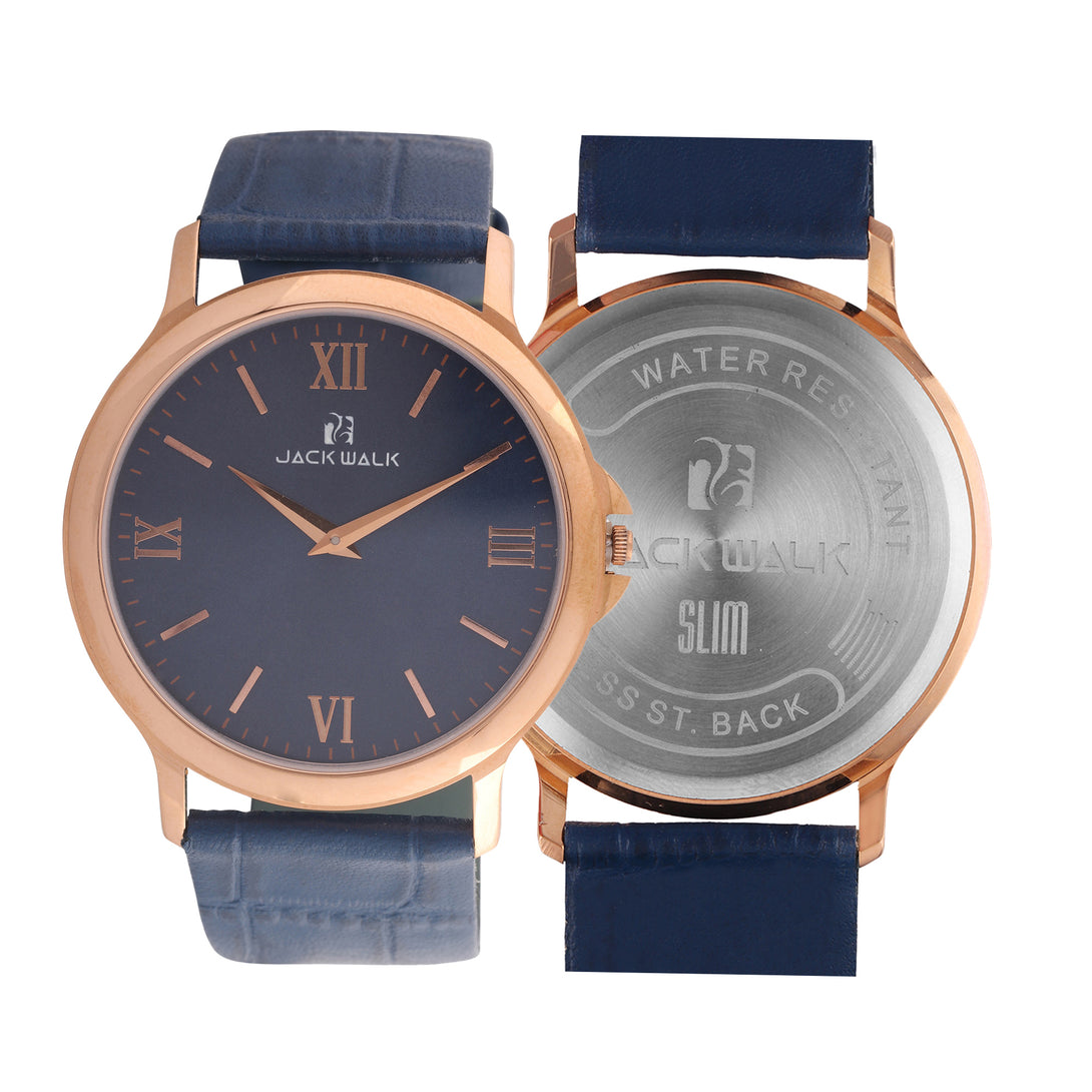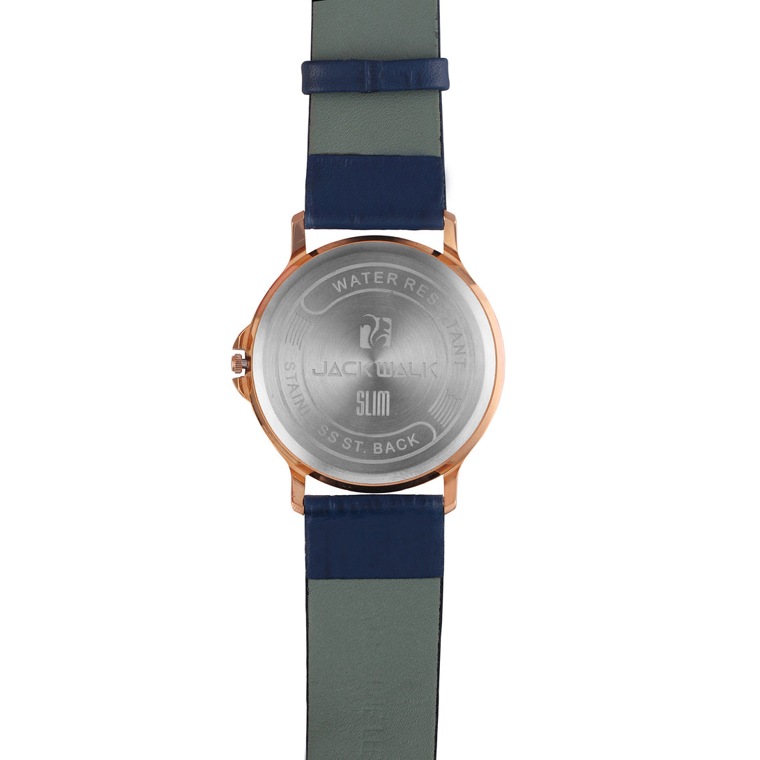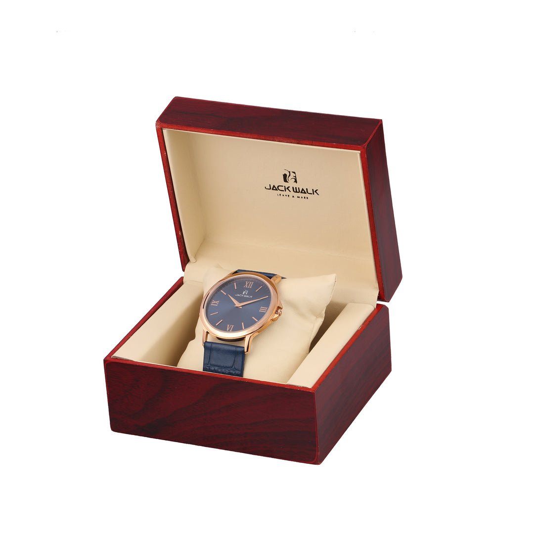Gold case with blue lather Strap slim Watch for man
